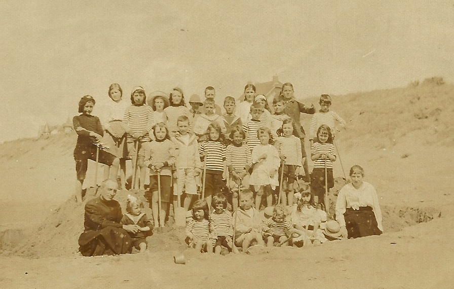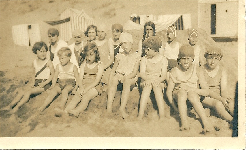 Au milieu du groupe, ma grand mère, marguerite maussion (1910-1995). En pull à rayure sa soeur marie et son frère rené.